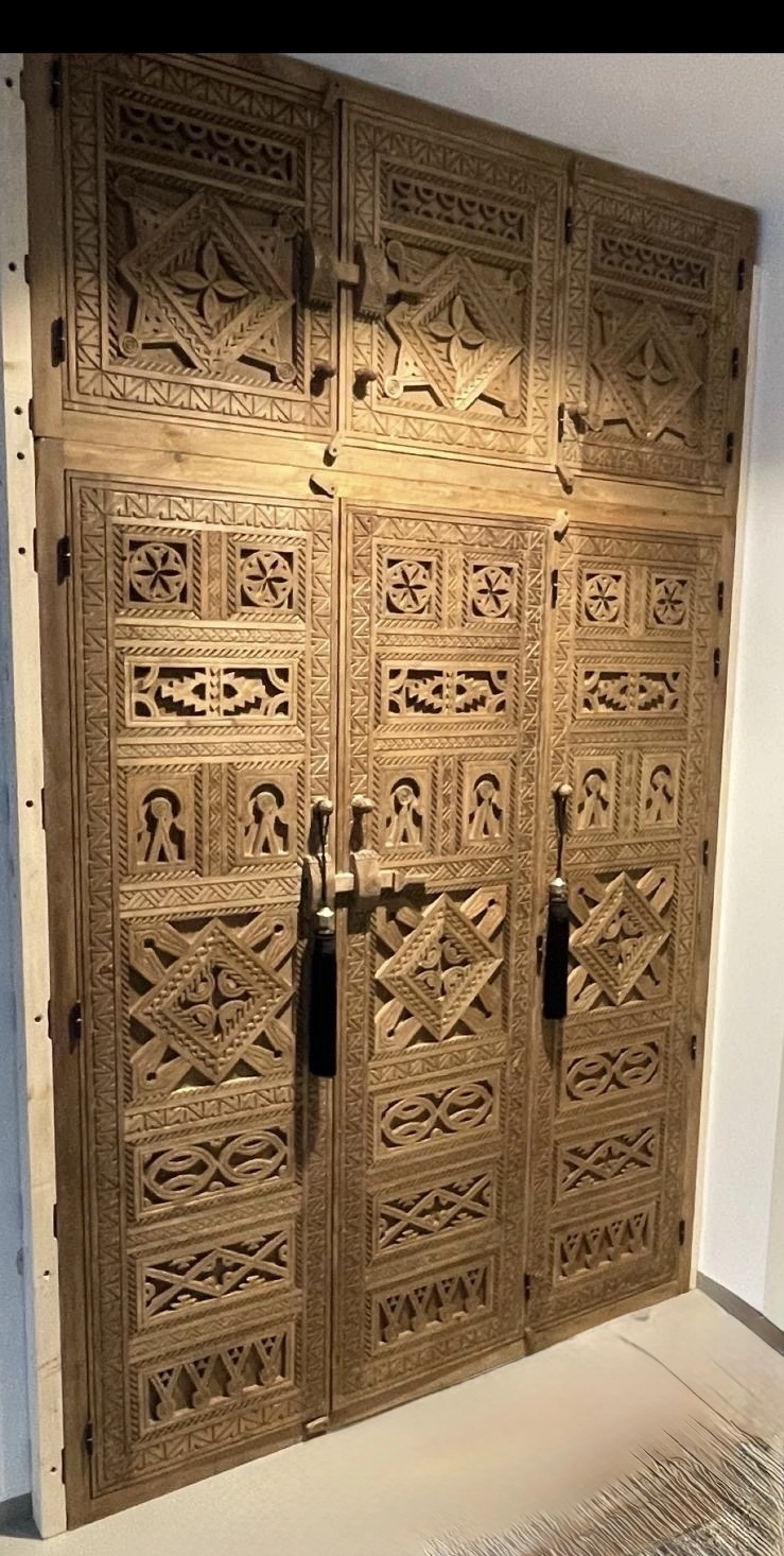 Notre savoir-faire artisanal et notre expertise nous permettent de concevoir et de fabriquer des pièces d’exception adaptées à vos besoins : - Portes décoratives en bois et portes berbères authentiques sculptées à la main - Mobilier sur mesure en travertin, marbre, bois noble ou en béton ciré -Tables en zelliges aux finitions traditionnelles ou contemporaines - Luminaires alliant design et artisanat marocain -Tapis tissés à la main, entièrement personnalisables, dimensions et couleurs -Poteries et jarres -Sourcing de pièces uniques