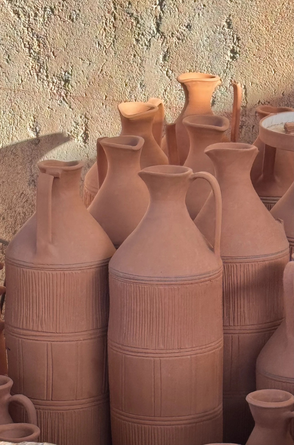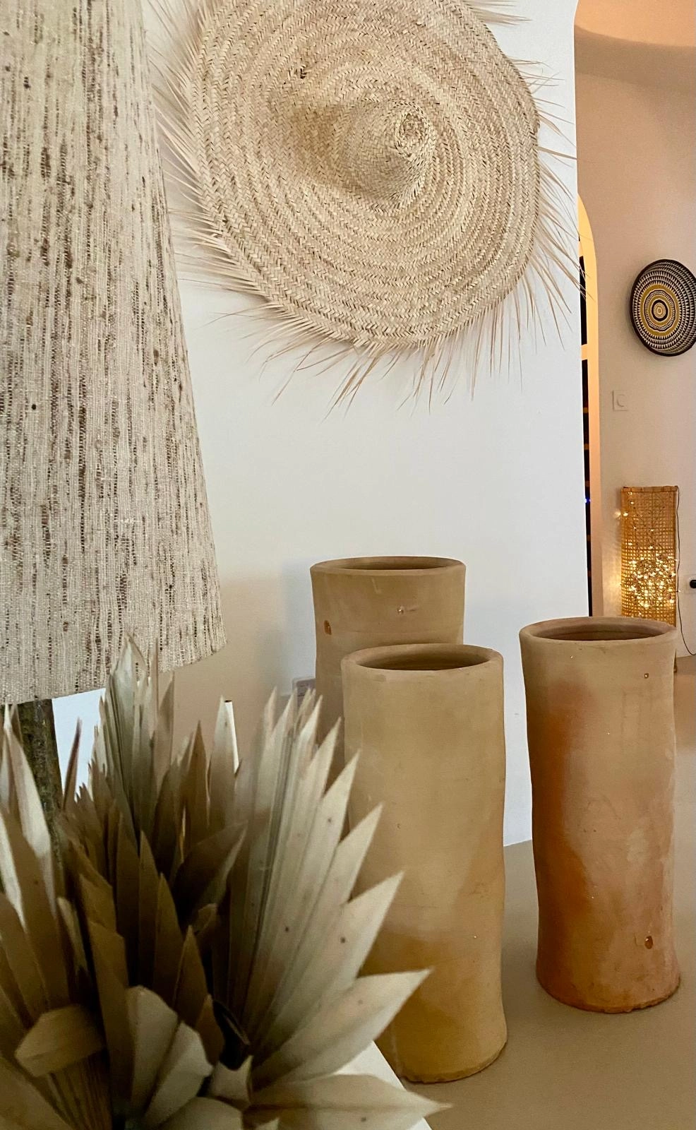 Véritables objets de caractère, nos poteries et jarres incarnent l’essence même de l’artisanat méditerranéen Façonnées à la main en terre cuite, céramique ou en tadelakt, elles révèlent la beauté des matières naturelles et le geste précis des artisans qui leur donnent vie Matériaux : Terre cuite, céramique, Tadelakt , travaillés selon des techniques artisanales traditionnelles Design : Formes organiques, lignes épurés ou silhouettes généreuses, pensées pour sublimer les espaces intérieurs et extérieurs