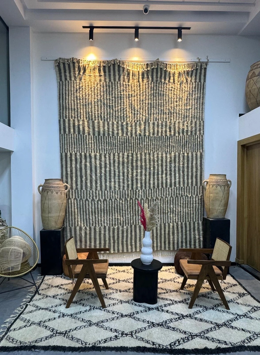 Pièces emblématiques de l’artisanat marocain, nos tapis en laine allient tradition et modernité. Des iconiques tapis berbères, devenus les intemporels de la décoration, aux sublimes Mrirt au tissage dense et soyeux, chaque création raconte une histoire Materiaux : 100% laine naturelle Design : Motifs traditionnels revisités, dessin berbères ou lignes modernes, déclinés dans une palette subtile de tons naturels ou colorés Formats : Disponibles et réalisables sur mesure dans de nombreuses dimensions, jusqu’au format XXL.